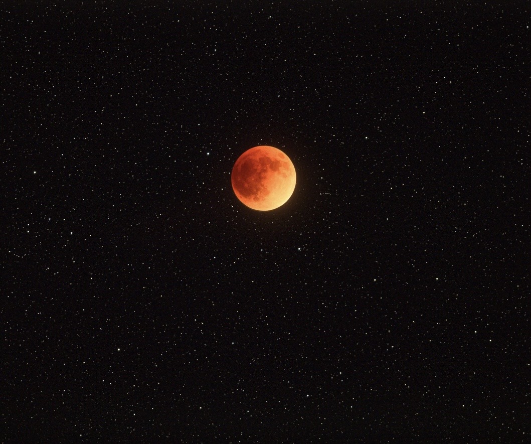 This is a Full Moon in Virgo, that’s also a Total Lunar Eclipse, and a Blood Moon. As the Earth moves directly between the Sun and the Moon, it casts a shadow across the Moon. That shadow turns the Moon…